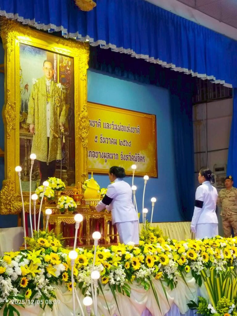 นางสาวสุกัลยา นาคเพ็ง เกษตรอำเภอบางมูลนาก พร้อมด้วยเจ้าหน้าที่จากสำนักงานเกษตรอำเภอบางมูลนาก เข้าร่วมพิธีเจริญพระพุทธมนต์และทำบุญตักบาตรถวายพระราชกุศล และพิธีวางพุ่มดอกไม้ถวายราชสักการะ เนื่องในกิจกรรมวันคล้ายวันพระบรมราชสมภพพระบาทสมเด็จพระบรมชนกาธิเบศร มหาภูมิพลอดุลยเดชมหาราช บรมนาถบพิตร วันชาติ และวันพ่อแห่งชาติ โดยมีนายธงชัย ขิมมากทอง นายอำเภอบางมูลนาก เป็นประธานในพิธี พร้อมด้วยหัวหน้าส่วนราชการ หัวหน้าหน่วยงานรัฐวิสาหกิจ ฯลฯ เข้าร่วมพิธี