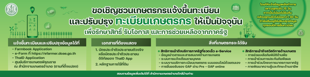 ขอเชิญชวนเกษตรกรทั่วประเทศ ร่วมกันขึ้นทะเบียนและปรับปรุงทะเบียนเกษตรกรประจำปี 2568/69