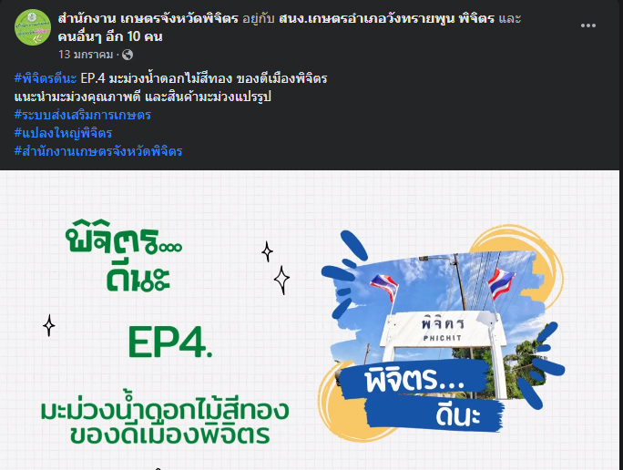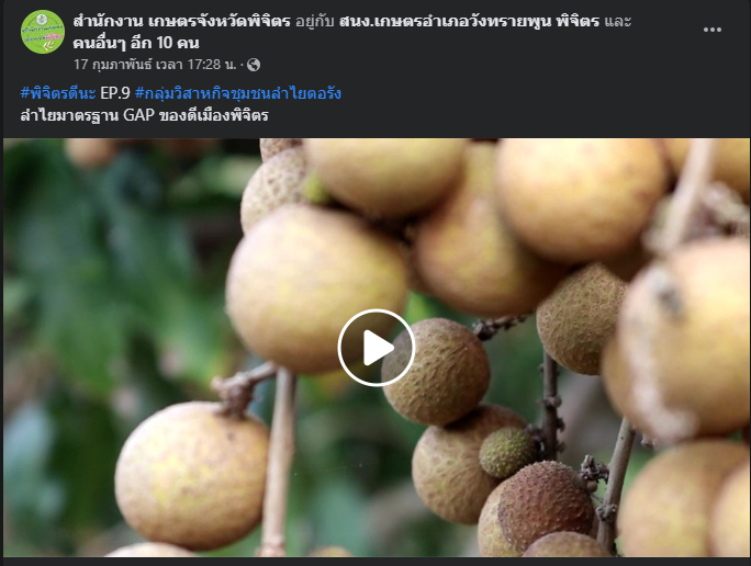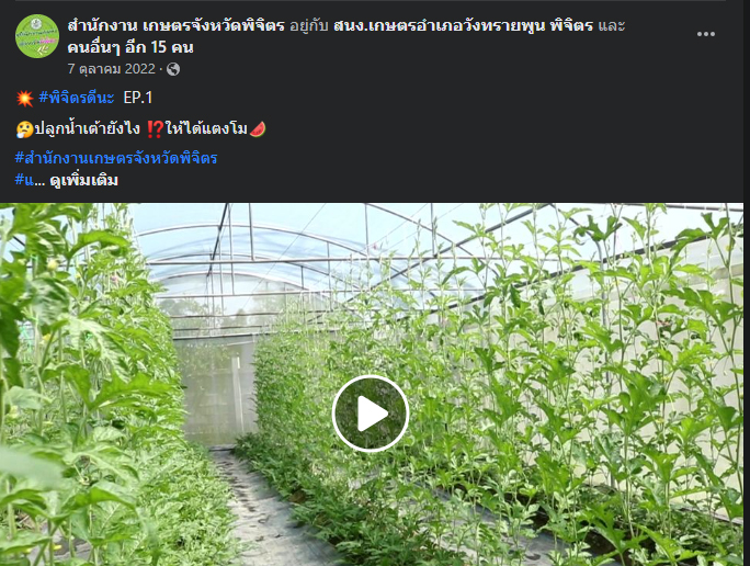 ท่านสามารถติดตามคลิปงานส่งเสริมการเกษตรในพื้นที่ได้ ทุกวันศุกร์ หน้าเฟสบุคสำนักงานเกษตจังหวัดพิจิตร #พิจิตรดีนะ