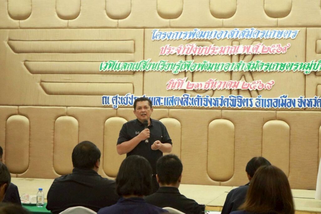 วันที่ 23 ธันวาคม 2568 นายชินวัฒน์ คุ้มม่วง นักวิชาการส่งเริมการเกษตร และตัวแทนอาสาสมัครเกษตรหมู่บ้าน (อกม.) อำเภอสากเหล็ก จำนวน 10 ท่าน เข้าร่วมจัดเวทีแลกเปลี่ยนเรียนรู้เพื่อพัฒนาอาสาสมัครเกษตรหมู่บ้าน (อกม.) วัตถุประสงค์เพื่อให้ได้รับการพัฒนาทักษะการทำงานและสมรรถนะในการเป็นเกษตรกรผู้นำเชิงจิตอาสาที่มีความรู้ และสามารถให้บริการแนะนำเกษตรกรในพื้นที่ได้ โดยมี นายสามารถ เดชบุญ เกษตรจังหวัดพิจิตร ร่วมให้เกียรติเป็นวิทยากร ถ่ายทอดความรู้และทักษะที่เกี่ยวข้องกับการปฏิบัติงานของ อกม. ณ ศูนย์ประชุม CK Convention Hall Phichit