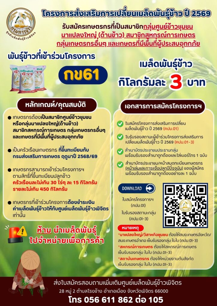 ข่าวประชาสัมพันธ์โครงการส่งเสริมการเปลี่ยนเมล็ดพันธุ์ข้าว ปี2569 saklek / 15 ธันวาคม 2025 ประชาสัมพันธ์ เปิดรั