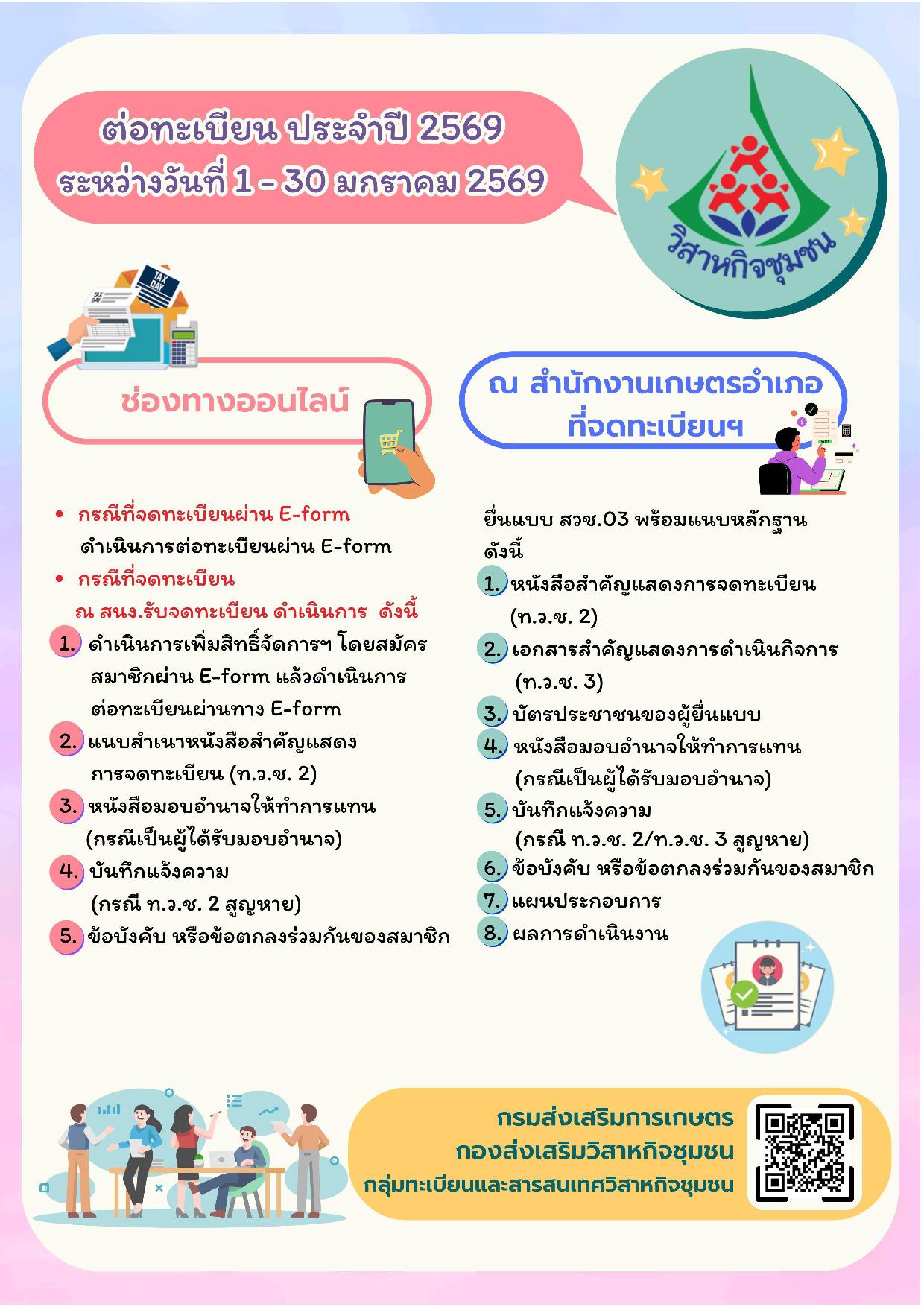 ประชาสัมพันธ์ การต่อทะเบียนวิสาหกิจชุมชน ประจำปี 2569