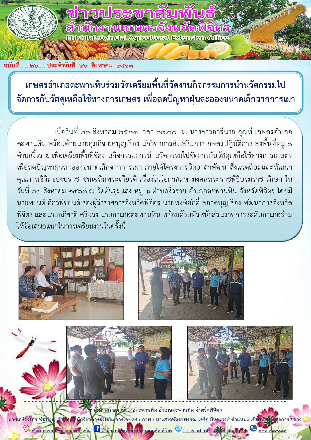 เกษตรอำเภอตะพานหินร่วมจัดเตรียมพื้นที่จัดงานกิจกรรมการนำนวัตกรรมไปจัดการกับวัสดุเหลือใช้ทางการเกษตร เพื่อลดปัญหาฝุ่นละอองขนาดเล็กจากการเผา