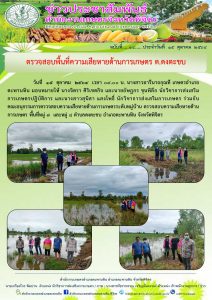 วันที่ 15 ตุลาคม 2564 เวลา 09.00 น. นางสาวอารีนาถกุณที เกษตรอำเภอตะพานหิน มอบหมายให้ นางจิตรา ศิริเขตกิจ และนายอัษฎกร ขุนพิลึก นักวิชาการส่งเสริมการเกษตรปฎิบัติการ และนางสาวสุนิสา แสงโพธิ์ นักวิชาการส่งเสริมการเกษตร ร่วมกับคณะอนุกรรมการตรวจสอบความเสียหายด้านการเกษตรระดับหมู่บ้าน ตรวจสอบความเสียหายด้านการเกษตร พื้นที่หมู่ 7 และหมู่ 8 ตำบลดงตะขบ อำเภอตะพานหิน จังหวัดพิจิตร