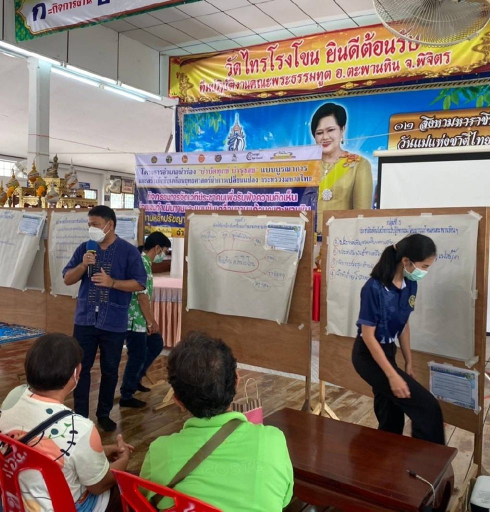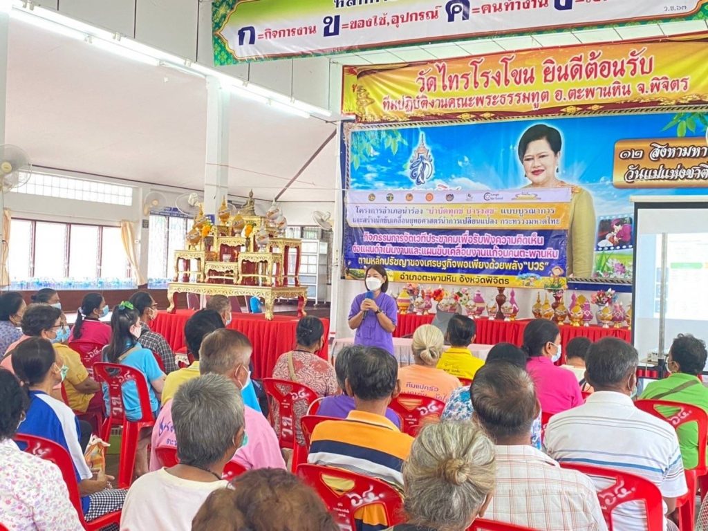 วันพฤหัสบดีที่ 13 กันยายน 2565 นายวิชิต ใจเฉื่อย เกษตรอำเภอตะพานหิน เป็นวิทยากรกระบวนการโครงการอำเภอนำร่อง “บำบัดทุกข์ บำรุงสุข” แบบบูรณาการฯ อำเภอตะพานหิน กิจกรรมจัดเวทีประชาคมเพื่อรับฟังความคิดเห็นต่อแผนการดำเนินงานและแผนขับเคลื่อนงานแก้จนคนตะพานหิน ตามหลักปรัชญาของเศรษฐกิจพอเพียงด้วยพลัง “บวร” มีกลุ่มเป้าหมาย 7 ภาคีเครือข่าย ได้แก่ ภาครัฐ ภาคประชาสังคม ภาคศาสนา ภาควิชาการ ภาคประชาชน ภาคสื่อสารมวลชน และภาคเอกชนหลุม เข้าร่วมเวทีประชาคม จำนวน 100 คน โดยมีนางสาวปินะฉัตร ไพชนม์ นายอำเภอตะพานหิน เป็นประธานเปิดการจัดเวทีประชาคม ณ วัดไทรโรงโขน ตำบลไทรโรงโขน อำเภอตะพานหิน จังหวัดพิจิตร
