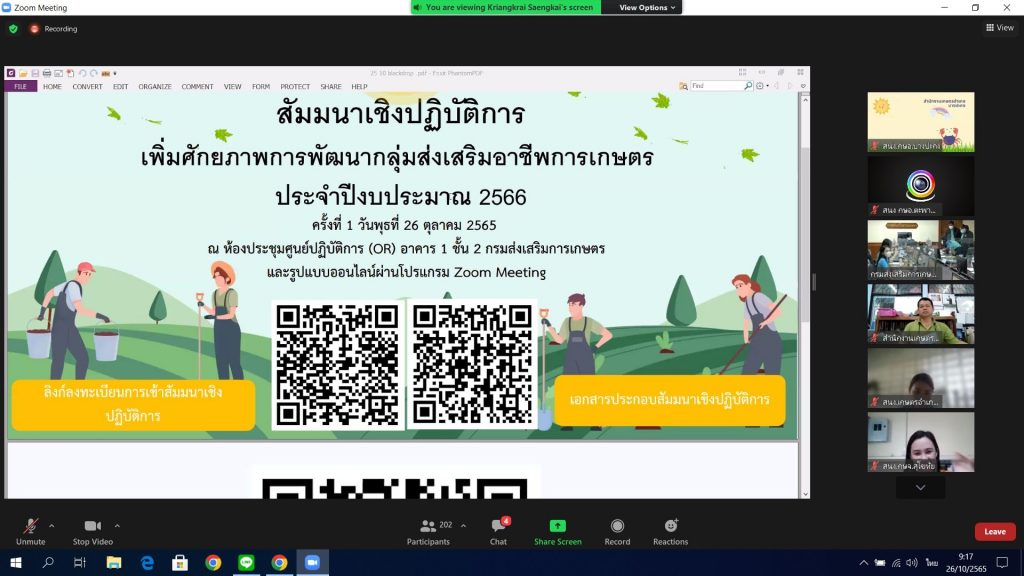วันที่ 26 ตุลาคม 2565 นายวิชิต ใจเฉื่อย เกษตรอำเภอตะพานหิน มอบหมายให้เจ้าหน้าที่ผู้รับงานกลุ่มส่งเสริมและพัฒนาเกษตรกร เข้าร่วมสัมมนาเชิงปฏิบัติการเพิ่มศักยภาพการพัฒนากลุ่มส่งเสริมอาชีพการเกษตร และงานคัดเลือกเกษตรกร บุคลากรทางการเกษตร ปีงบประมาณ พ.ศ. 2566 ผ่านรูปแบบออนไลน์ผ่านโปรแกรม Zoom Meeting