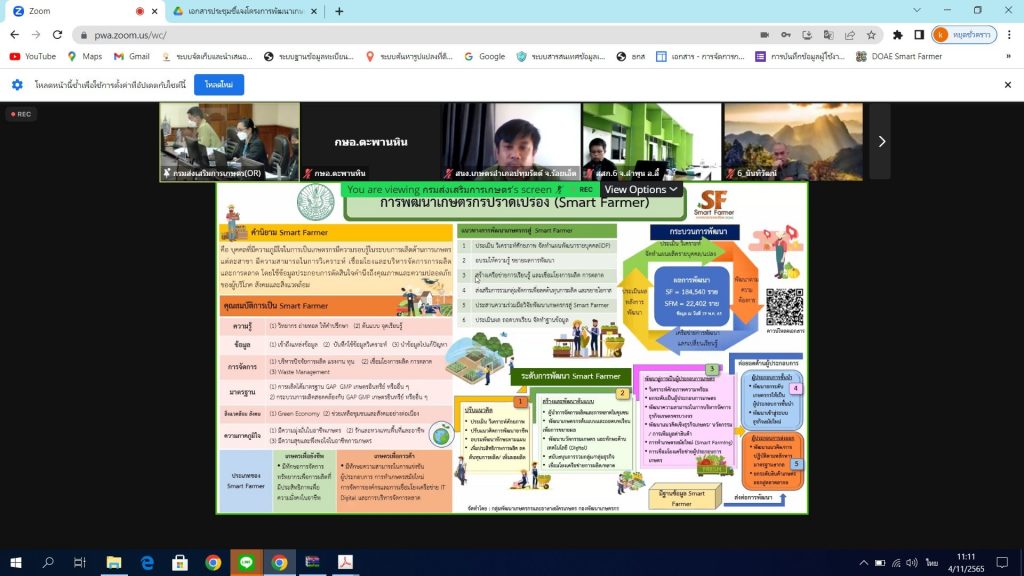 วันที่ 4 พฤศจิกายน 2565 เวลา 09:00 น นายวิชิต ใจเฉื่อย เกษตรอำเภอตะพานหิน มอบหมายให้เจ้าหน้าที่เกษตรตำบลเข้าร่วมประชุมชี้แจงโครงการพัฒนาเกษตรกรปราดเปรื่อง (Smart Farmer) ปีงบประมาณ พ.ศ. 2566 ผ่านรูปแบบออนไลน์ผ่านโปรแกรม Zoom Meeting