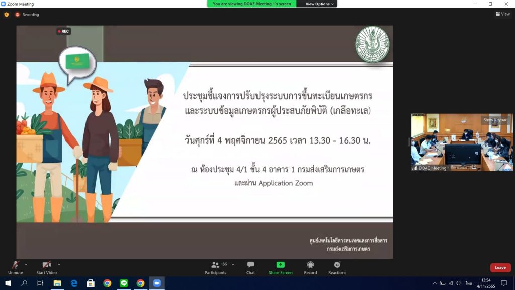 วันที่ 4 พฤศจิกายน 2565 เวลา 13:30 น นายวิชิต ใจเฉื่อย เกษตรอำเภอตะพานหิน มอบหมายให้เจ้าหน้าที่เกษตรตำบลเข้าร่วมประชุมเรื่องการปรับปรุงระบบโปรแกรมการขึ้นทะเบียนเกษตรกรและระบบการช่วยเหลือเกษตรกรผู้ประสบภัยพิบัติด้านการเกษตรอื่น (เกลือทะเล) ผ่านระบบ Zoom (Meeting id)