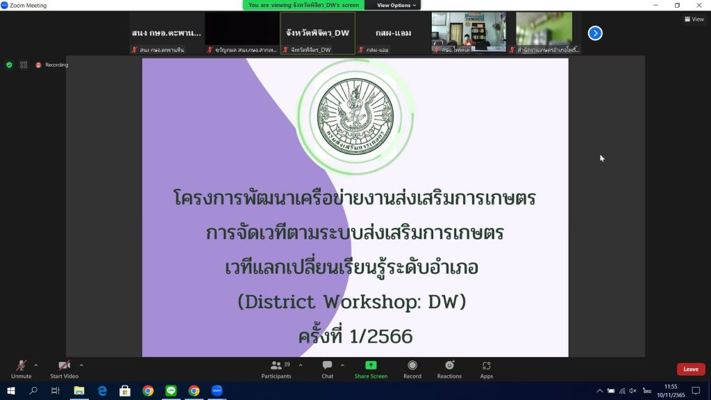 วันที่ 9-10 พฤศจิกายน 2565 นายวิชิต ใจเฉื่อย เกษตรอำเภอตะพานหิน พร้อมด้วยเจ้าหน้าที่สำนักงานเข้าร่วมประชุมโครงการพัฒนาเครือข่ายงานส่งเสริมการเกษตรการจัดเวทีตามระบบส่งเสริมการเกษตรเวทีแลกเปลี่ยนเรียนรู้ระดับอำเภอ (District Workshop: DW) ครั้งที่ 1/2566 ผ่านระบบ zoom และห้องประชุมสำนักงานเกษตรอำเภอตะพานหิน จังหวัดพิจิตร