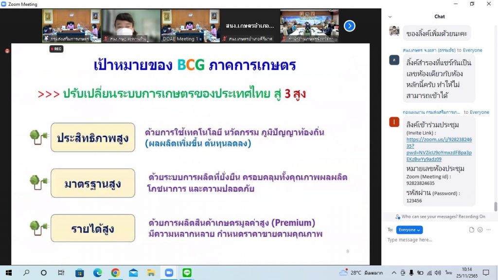 วันที่ 25 พฤศจิกายน พ.ศ 2565 นายวิชิต ใจเฉื่อย เกษตรอำเภอตะพานหิน มอบหมายให้นางเกสร บีกขุนทด นักวิชาการส่งเสริมการเกษตรชำนาญการ เข้าร่วมการประชุมการขับเคลื่อนการส่งเสริมการเกษตรด้วย BCG Model แบบบูรณาการเชิงพื้นที่และแนวทางการดำเนินงานกรมส่งเสริมการเกษตร ประจำปีงบประมาณ 2566 ผ่านระบบทางไกลออนไลน์ Application Zoom ณห้องประชุมสำนักงานเกษตรอำเภอตะพานหิน จังหวัดพิจิตร