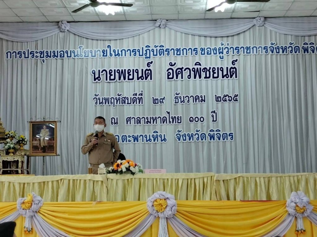 วันพฤหัสบดีที่ 29 ธันวาคม 2565 นายวิชิต ใจเฉื่อย เกษตรอำเภอตะพานหิน เข้าร่วมประชุมกำนัน ผู้ใหญ่บ้านอำเภอตะพานหิน เพื่อชี้แจงข้อราชการที่เกี่ยวข้องกับงานตามระบบส่งเสริมการเกษตร และรับมอบนโยบายการปฏิบัติราชการ โดย นายพยนต์ อัศวพิชยนต์ ผู้ว่าราชการจังหวัดพิจิตร ณ ศาลามหาดไทย 100 ปี อำเภอตะพานหิน จังหวัดพิจิตร