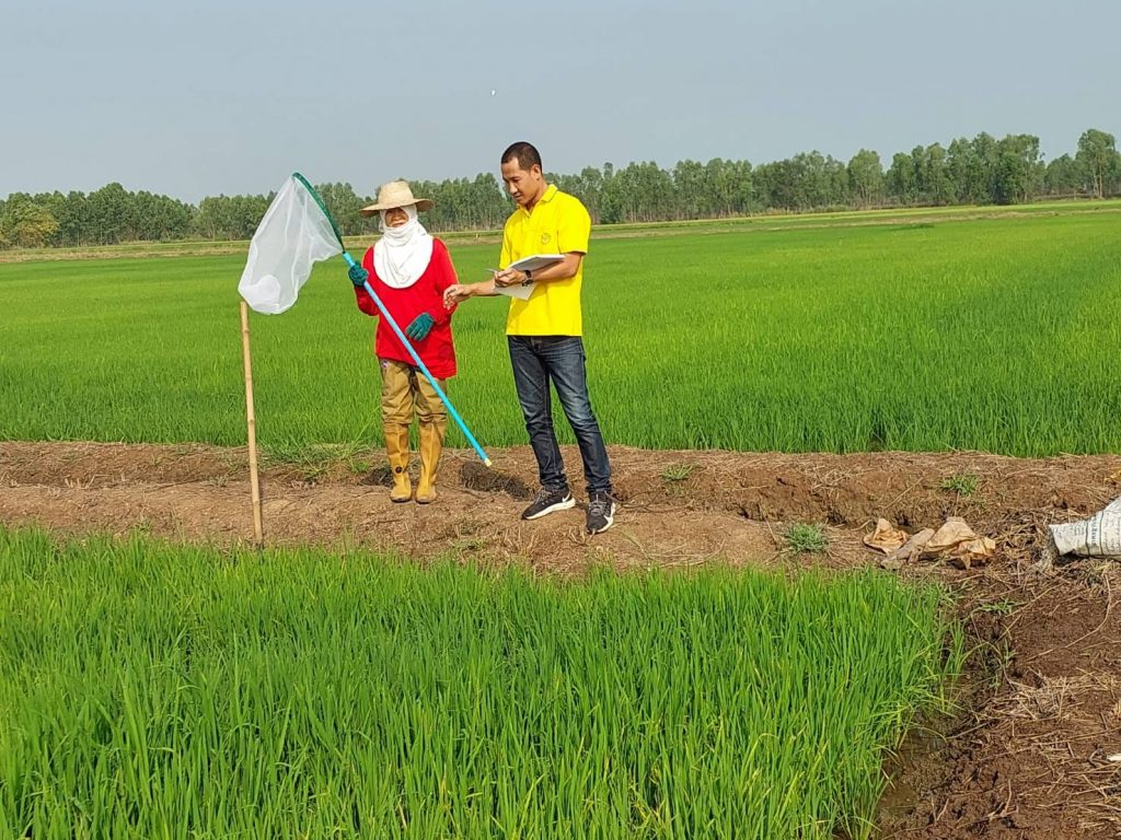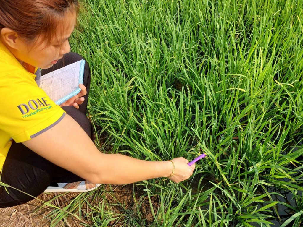 วันที่ 6 มกราคม 2566 เวลา 08.30 น. นายวิชิต ใจเฉื่อย เกษตรอำเภอตะพานหินมอบหมายให้ นายอัษฎกร ขุนพิลึก และนางจิตรา ศิริเขตกิจ นักวิชาการส่งเสริมการเกษตรปฏิบัติการ ลงพื้นที่ติดตามแปลงพยากรณ์ศัตรูพืช เพื่อประเมินสถานการณ์ศัตรูพืชพร้อมให้คำแนะนำในการจัดการศัตรูพืช ณ แปลงพยากรณ์ศัตรูพืช หมู่ 5 ทับหมัน อำเภอตะพานหิน จังหวัดพิจิตร
