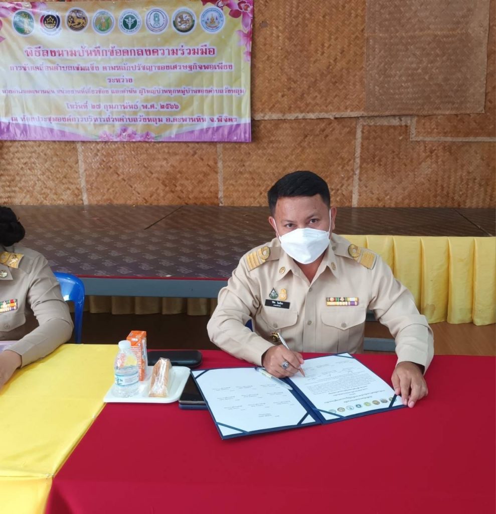 วันจันทร์ที่ 27 กุมภาพันธ์ 2566 นายวิชิต ใจเฉื่อย เกษตรอำเภอตะพานหิน ร่วมลงนามบันทึกข้อตกลงความร่วมมือ การขับเคลื่อนตำบลเข้มแข็ง ตามหลักปรัชญาของเศรษฐกิจพอเพียง ระหว่างนายอำเภอตะพานหิน หน่วยงานที่เกี่ยวข้อง องค์การบริหารส่วนตำบลวังหลุม และกำนัน ผู้ใหญ่บ้านทุกหมู่บ้านของตำบลวังหลุม โดยมี นางสาวปิยะฉัตร ไพชนม์ นายอำเภอตะพานหิน เป็นประธานในพิธี ณ ห้องประชุมองค์การบริหารส่วนตำบลวังหลุม ตำบลวังหลุม อำเภอตะพานหิน จังหวัดพิจิตร