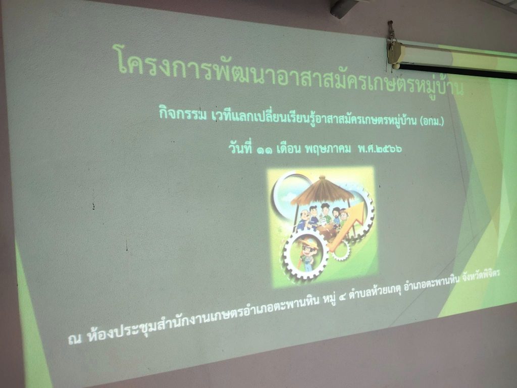วันที่ 11 พฤษภาคม 2566 นายวิชิต ใจเฉื่อย เกษตรอำเภอตะพานหิน มอบหมายให้นายอัษฎกร ขุนพิลึก นักวิชาการส่งเสริมการเกษตรชำนาญการ จัดอบรมโครงการพัฒนาอาสาสมัครเกษตรหมู่บ้าน กิจกรรมเวทีแลกเปลี่ยนเรียนรู้อาสาสมัครเกษตรหมู่บ้าน (อกม.) ครั้งที่ 2 ณ ห้องประชุมสำนักงานเกษตรอำเภอตะพานหิน ตำบลห้วยเกตุ อำเภอตะพานหิน จัหวัดพิจิตร