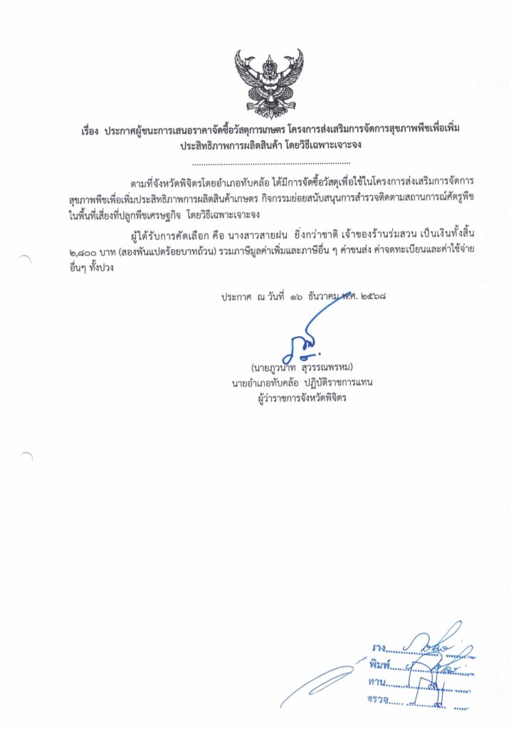 ประกาศผู้ชนะการเสนอราคาจัดซื้อวัสดุการเกษตร โครงการส่งเสริมจัดการสุขภาพพืชเพื่อเพิ่มประสิทธิภาพการผลิตสินค้าBy tapkhlo / 6 มกราคม 2026