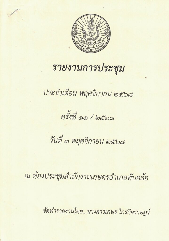 ข่าวภายใน/รายงานการประชุมรายงานการประชุม ประจำเดือน พฤศจิกายน 2568 ครั้งที่ 11/2568 tapkhlo / 13 มีนาคม 2026