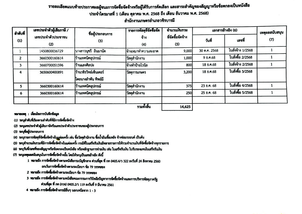 จัดซื้อจัดจ้าง ไตรมาสที่ 1 (เดือน ตุลาคม – ธันวาคม 68)
