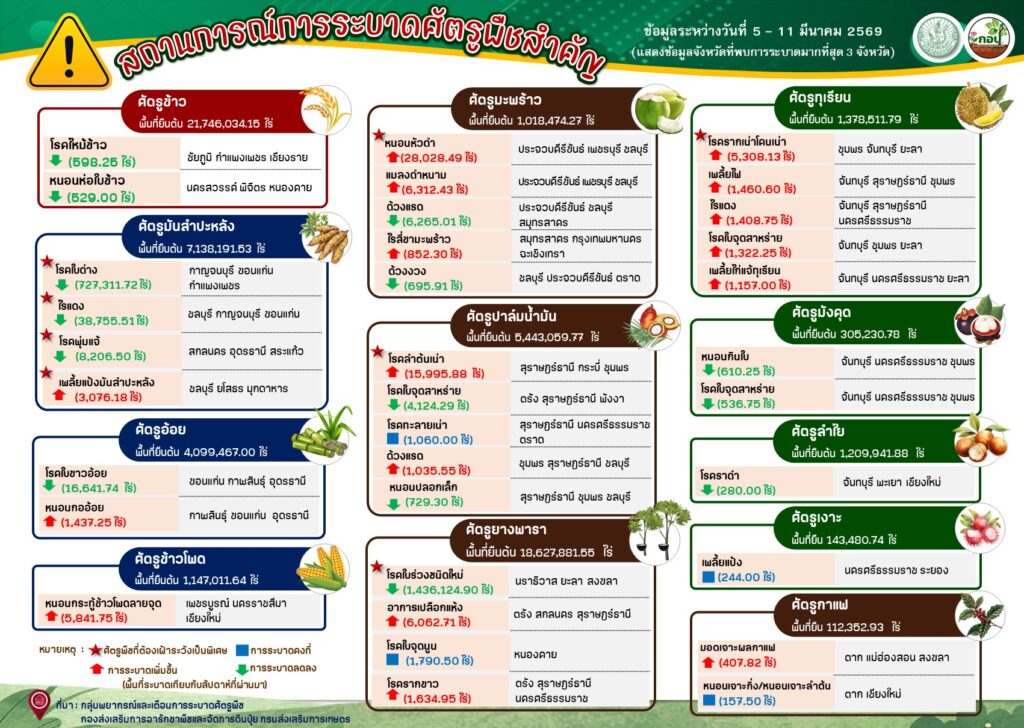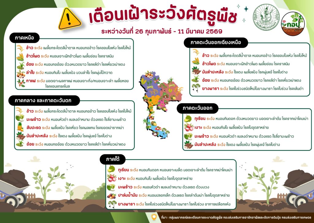 เตือนเฝ้าระวังศัตรูพืชระหว่างวันที่ 29 มกราคม – 11 กุมภาพันธ์ 2569