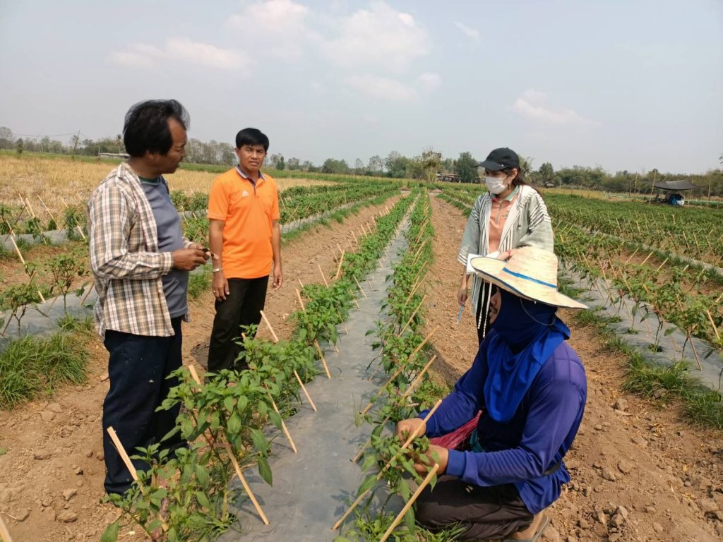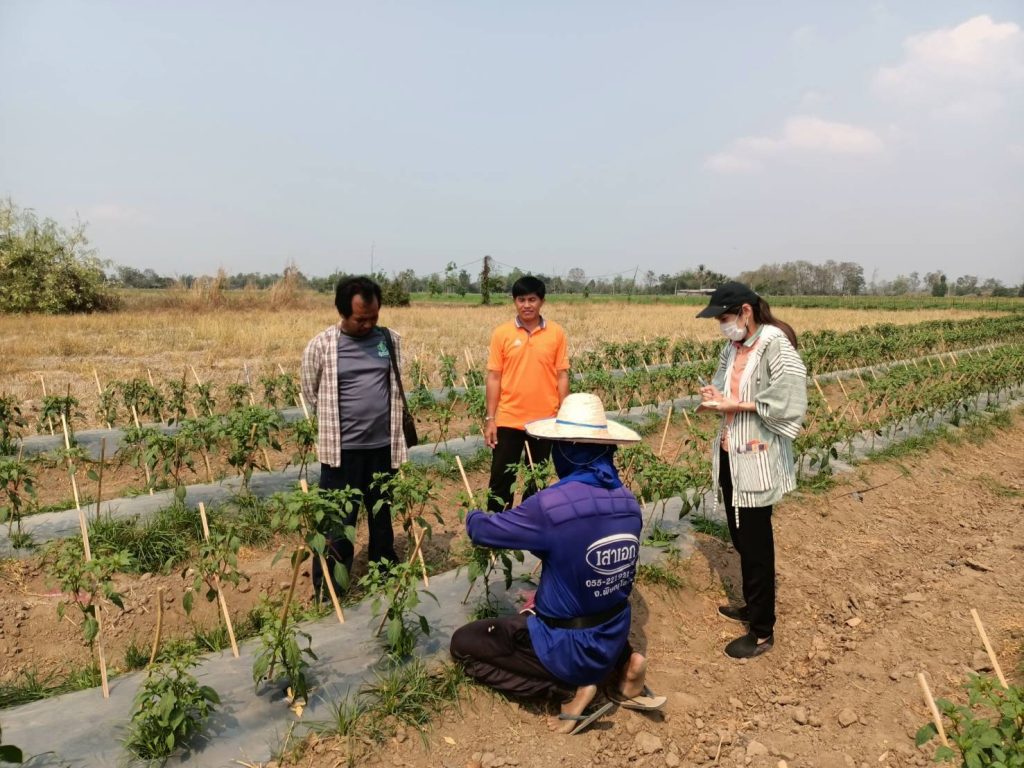 ลงพื้นที่เยี่ยมเยียนเกษตรกรนายสมหมาย ผู้เลือกการปรับเปลี่ยนพื้นที่มาปลูกพริกซอสแทนการปลูกข้าว
