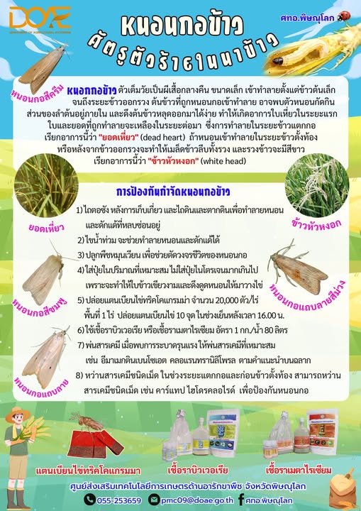 ศทอ.พิษณุโลก #แจ้งเฝ้าระวัง และหมั่นสำรวจแปลง : #หนอนกอข้าว ศัตรูตัวร้ายในนาข้าว