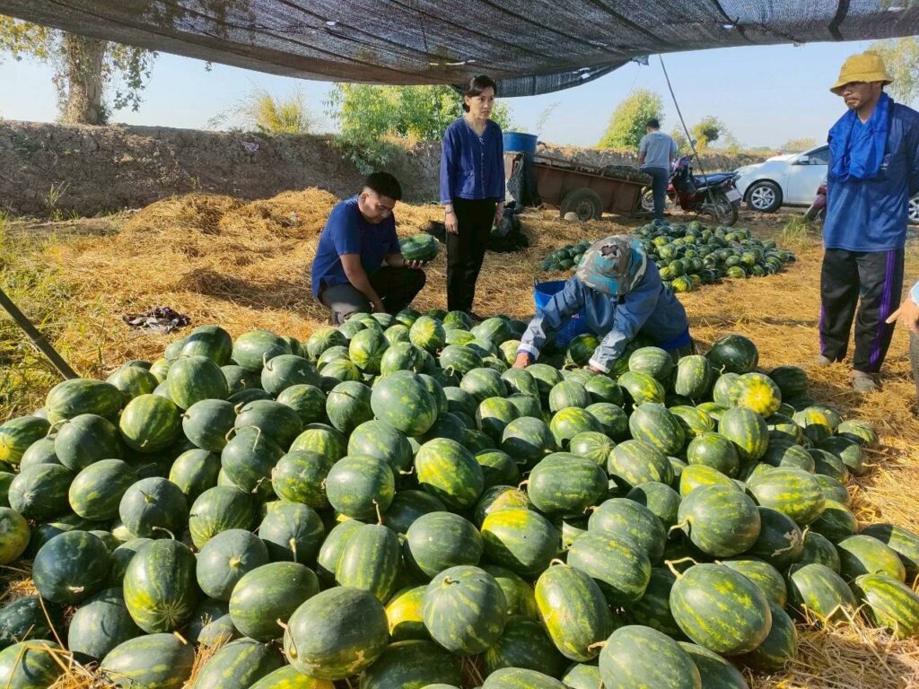 ลงพื้นที่เยี่ยมเยียนเกษตรกร โครงการเกษตรกรผู้ปลูกพืชใช้น้ำน้อย ผู้เลือกการปรับเปลี่ยนพื้นที่มาปลูกแตงโม แทนการปลูกข้าวในฤดูนาปรัง