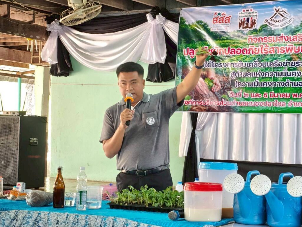 เป็นวิทยากร โครงการกิจกรรมส่งเสริม ปลูกพืชปลอดภัยไร้สารพิษ เศรษฐกิจพอเพียง ภายใต้โครงการขับเคลื่อนเครือข่าย ร่วมสร้างชุมชนท้องถิ่น สู่ตำบลแห่งความมั่นคง 5 ด้าน ความมั่นคงด้านอาหาร โดย องค์การบริหารส่วนตำบลหนองปลาไหล ณ โรงเรียนบ้านหนองปลาไหล ตำบลหนองปลาไหล อำเภอวังทรายพูน จังหวัดพิจิตร